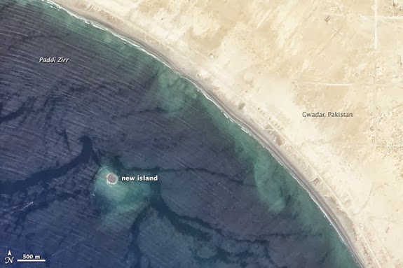 2013. szeptember 24-én igen erős, 7,7-es magnitúdójú földrengés rázta meg Pakisztán Beludzsisztán tartományát. A rengést követően egy kis sziget emelkedett ki az Arab-tengerből Gwadar város közelében. A sziget tengerszint feletti magassága kb. 10 m, átmérője 150-200 m körüli. Mivel az új sziget több száz kilométerre található a földrengés fészkétől, ezért kizárható, hogy vetődés hozta volna létre. A jelenleg legvalószínűbbnek tűnő elképzelés szerint iszapvulkáni működés (https://hu.wikipedia.org/wiki/Iszapvulkán) eredményeként alakult ki